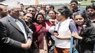 Minister for Horticulture, Haj & Auqaf, A. R. Veeri, Minister for Public Works, Floriculture, Gardens & Parks, Syed Altaf Bukhari, Minister for Finance, Dr. Haseeb A. Drabu, former MLA, Rafi Mir, accompanied the Chief Minister.