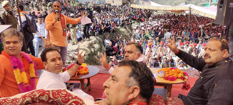 Tarun Chugh, National general secretary BJP addressing a public meeting in Kishtwar.