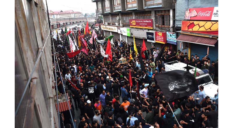 SRINAGAR, July 27: After more than three decades since the outbreak of militancy, the Shia community today took out a Muharram procession on a traditional route in Srinagar passing through the city centre Lal Chowk, with thousands of people participating in it amid tight security.