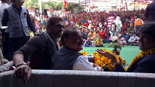 JAMMU, Dec 11: Vijaypur wore a festive look with a large number of people of the town and its peripheries joining star-studded road show with children showing keen interest in their favourite Superman, Mukesh Khanna and youngsters itching to have a word with Mukesh Rishi, who accompanied the National Conference candidate Surjeet Singh Slathia today in his massive road show.