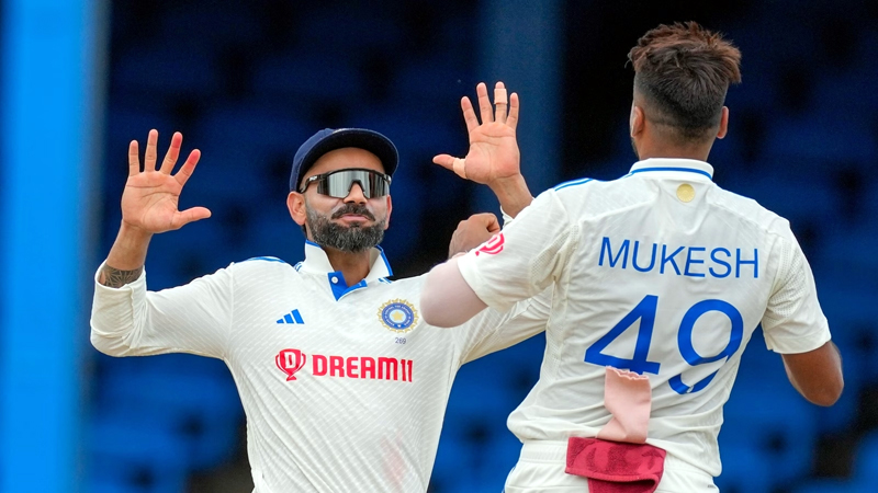 Mukesh Kumar and Virat Kohli celebrating after taking a wicket. By Daily Excelsior - July 23, 2023 Share FacebookTwitterWhatsAppPinterestLinkedinCopy URLTelegramEmailTumblrReddItPrintKoo Mukesh Kumar and Virat Kohli celebrating after taking a wicket. Mukesh Kumar and Virat Kohli celebrating after taking a wicket. Follow our WhatsApp channel