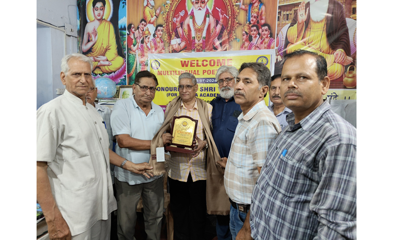 JAMMU, July 4: Shree Vishwakarma Library & Research Centre New Plot and Vishwakarma Temple Committee Digiana here today jointly organized a ‘Multilingual Poetry Session’ and felicitated Vijay Verma, Sahitya Academy Awardee and a renowned Dogri writer.