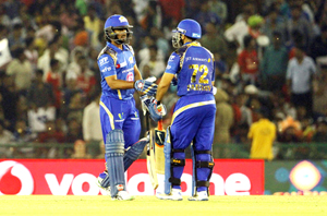 Earlier, Mumbai Indians were dealt a body blow in the first over itself with nothing on the board, when medium pacer Sandeep Sharma had skipper Rohit Sharma caught behind by Nikhil Naik with his second delivery.