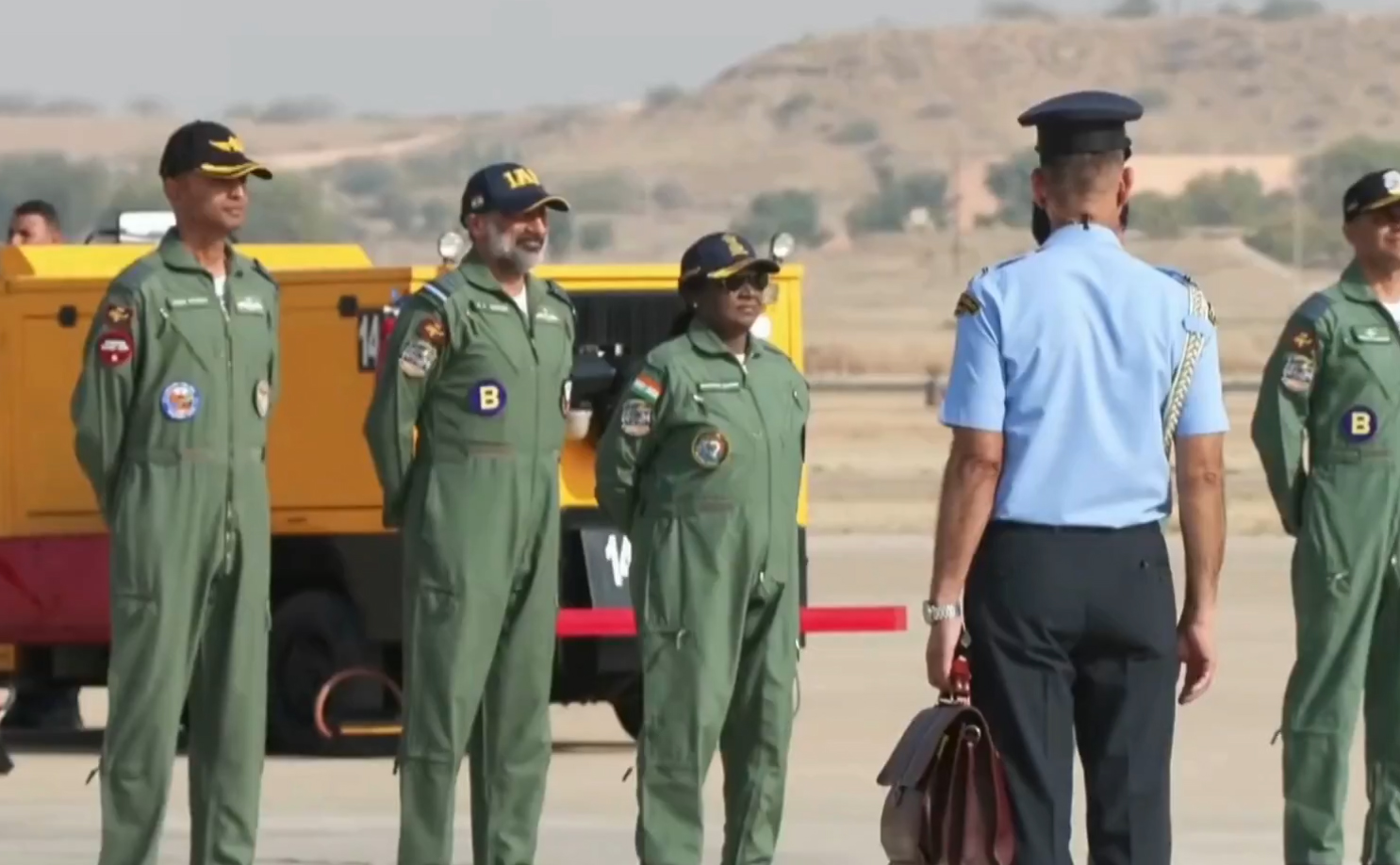 The LCH took off from the Jaisalmer Indian Air Force (IAF) station. Before the sortie, the captain briefed the president. Dressed in an olive green uniform and helmet, she waved from the cockpit before departing.