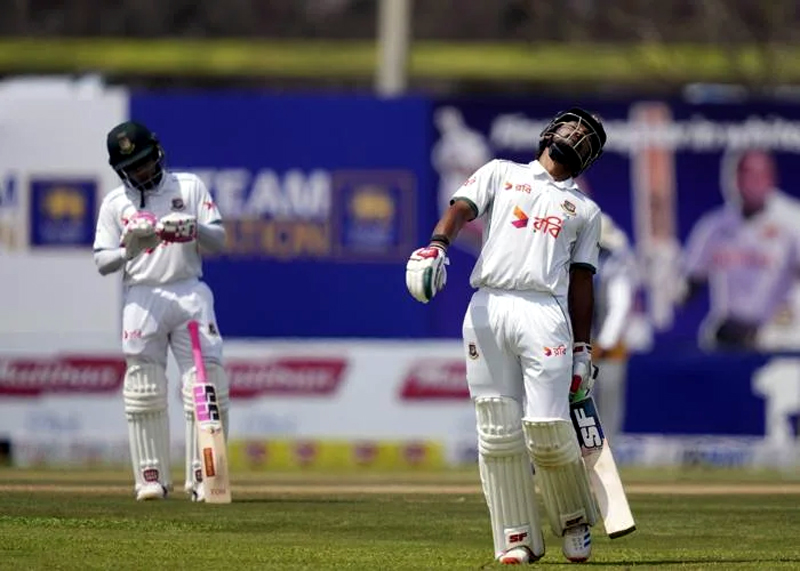 The old warhorse stitched together two crucial stands that wrested the momentum away from the hosts. First came a record-breaking 264-run partnership with captain Najmul Hossain Shanto, who looked in sublime touch during his knock of 148. Shanto, though, fell against the run of play — lured into a false stroke by Asitha Fernando and holing out to Angelo Mathews at mid-off, a sharp catch.