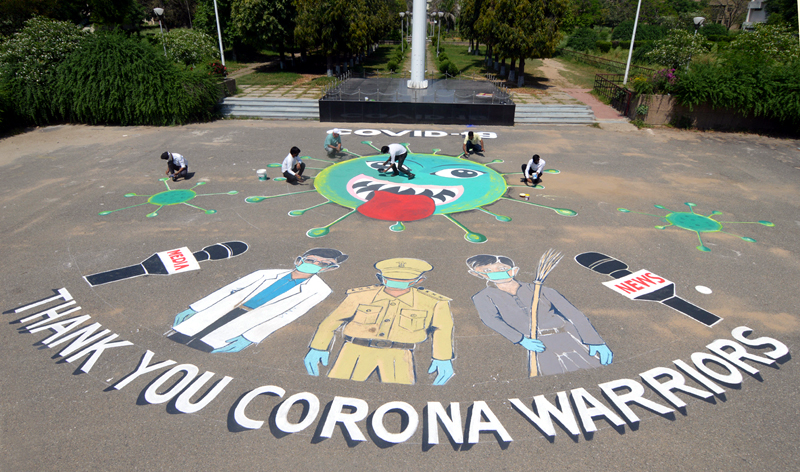 Music and Fine Arts students used novel way to extend gratitude to Corona warriors in Jammu on Thursday. —Excelsior/Rakesh By Daily Excelsior - April 30, 2020 Share FacebookTwitterWhatsAppPinterestLinkedinCopy URLTelegramEmailTumblrReddItPrintKoo Music and Fine Arts students used novel way to extend gratitude to Corona warriors in Jammu on Thursday. —Excelsior/Rakesh Music and Fine Arts students used novel way to extend gratitude to Corona warriors in Jammu on Thursday. —Excelsior/Rakesh Follow our WhatsApp channel