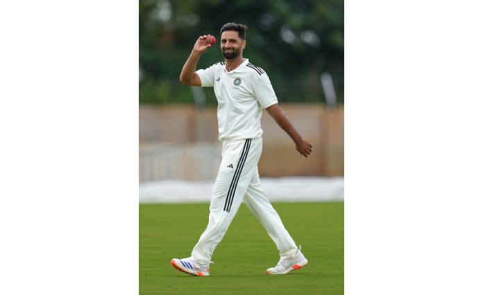 JAMMU, Aug 29: Jammu & Kashmir’s talented all-rounder Auqib Nabi scripted cricketing history today by taking a rare double hat-trick during the Duleep Trophy match between North Zone and East Zone at the BCCI Centre of Excellence Ground in Bengaluru. Nabi’s extraordinary feat – four wickets in four consecutive balls – is the first-ever in the 64-year history of the tournament and places him among an elite group of Indian cricketers to achieve such a milestone.