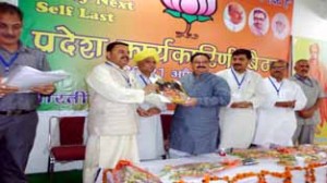 Over 150 delegates from all three regions of the state are attending the meet. During the first day of the meet Mr Nadda and other leaders felicitated Ghulam Mohammed Mir, the PDP leader from Kashmir who recently joined BJP. Besides, Tsering Dorjey former MLA and Ex CEC Leh was also felicitated by them.