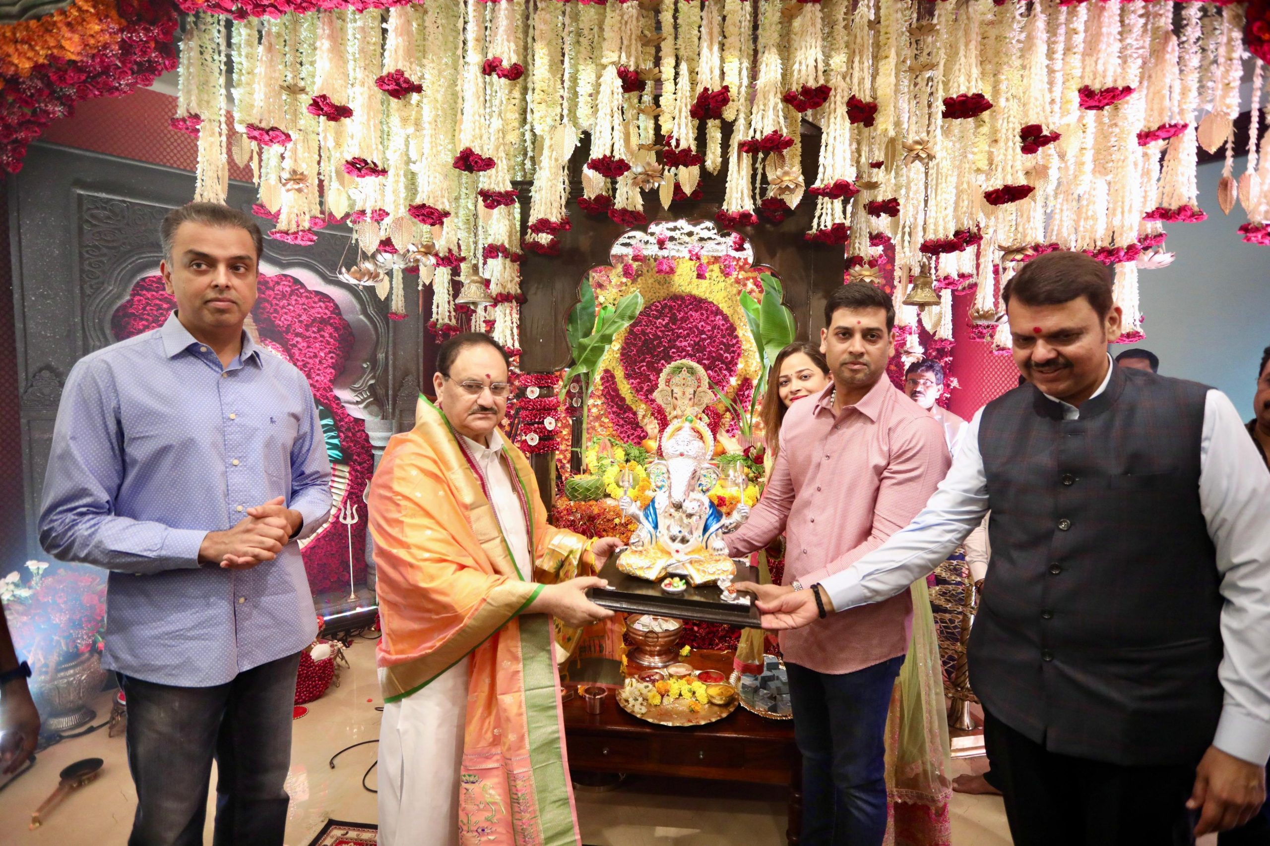MUMBAI, Sept 14: Bharatiya Janata Party (BJP) president and Union Health Minister J P Nadda on Saturday performed Ganesh puja at Maharashtra Chief Minister Eknath Shinde’s official residence in south Mumbai as part of ongoing Ganpati festival.