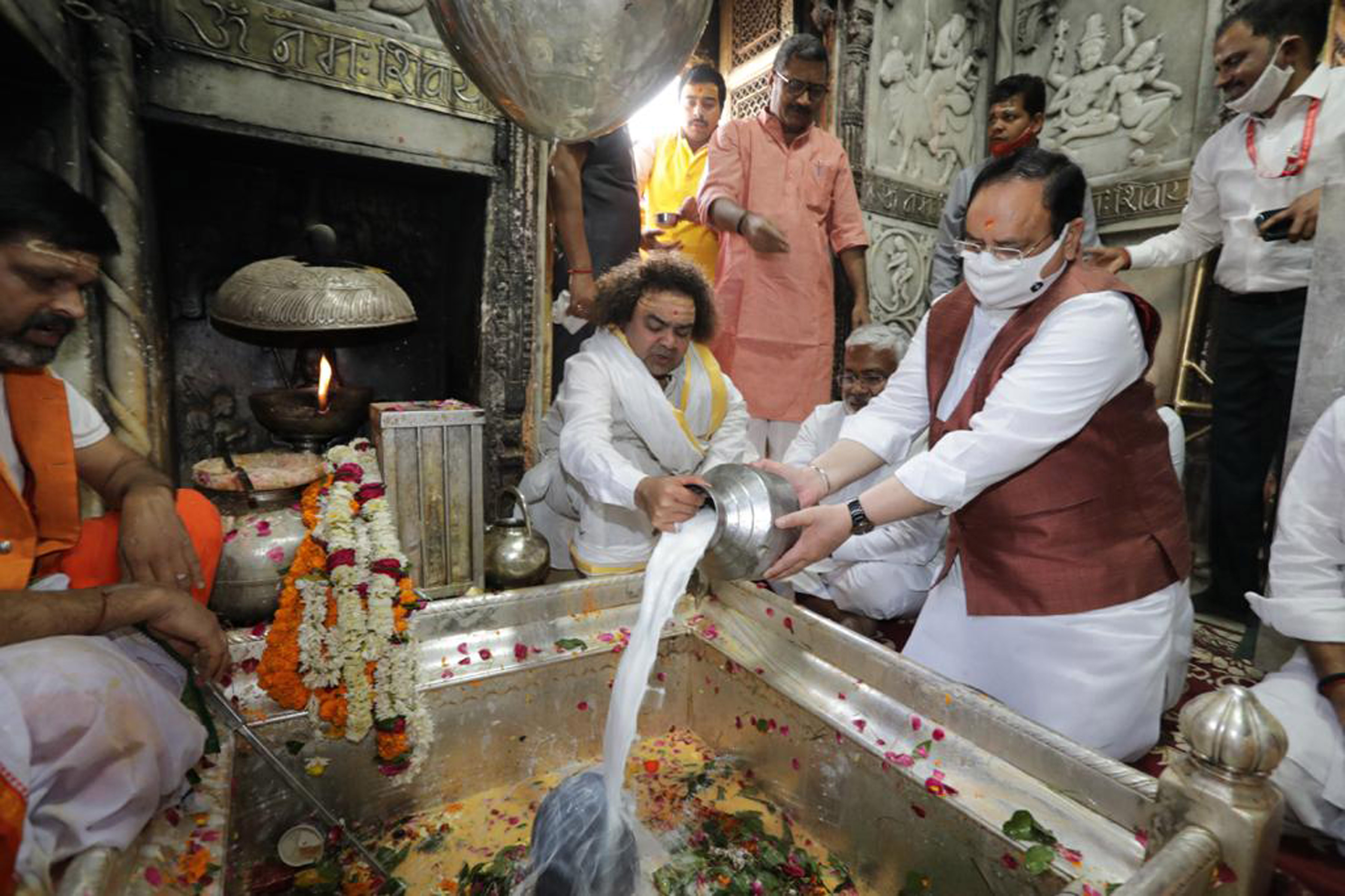 On the second day of his first Varanasi sojourn after becoming the BJP president, he started his day with worship of Baba Vishwanath. Mr Nadda expressed happiness on the construction work of Shri Kashi Vishwanath Temple Corridor running here. He was accompanied by several party leaders including UP BJP president Swatantra Dev Singh, co-incharge Sunil Ojha.