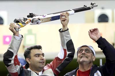 The 29-year-old star performer of the 2010 Delhi CWG, where he clinched four gold medals, held his nerve in a gripping eight-man finale to stave off the challenge of Chinese rival Wang Tao to end up third with an aggregate of 701.1. He thus made amends of his disappointing 9th place finish four years ago in Beijing.