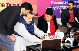 National Conference President Dr Farooq Abdullah and Provincial President Devender Singh Rana inaugurating portal for KAS aspirants at Jammu on Thursday.