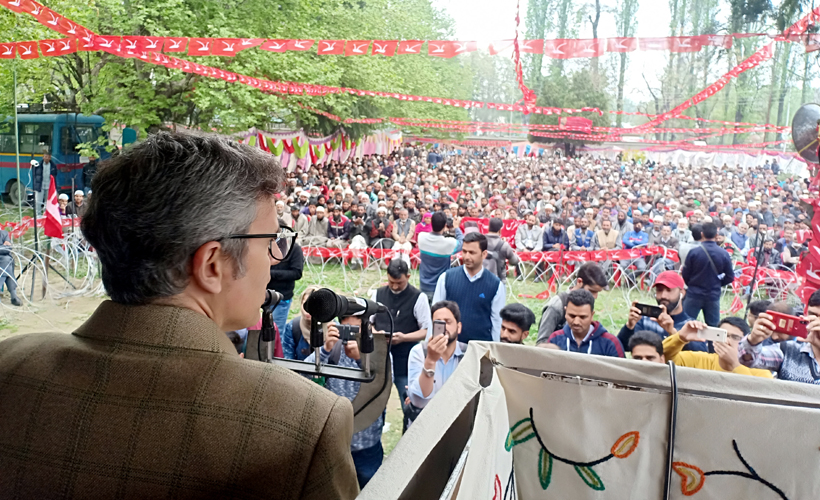 National Conference vice president Omar Abdullah addressing a gathering at Khanabal in Anantnag on Saturday. —Excelsior/Sajad Dar