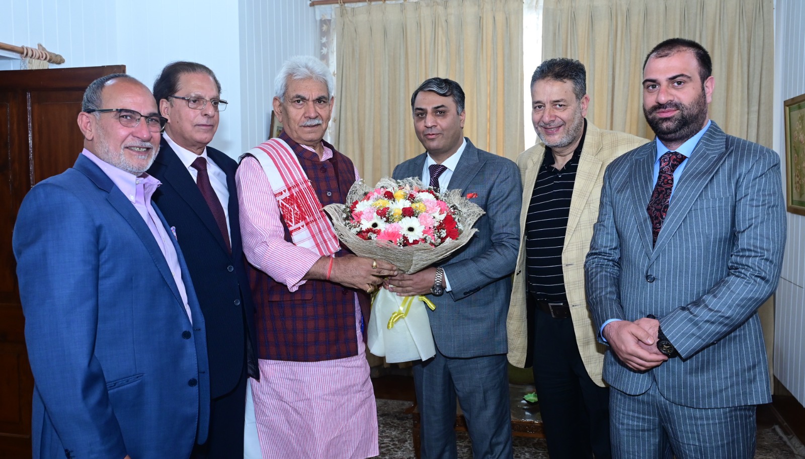 Earlier, a delegation of Kashmir Chamber of Commerce and Industry led by its president Sh Javid Ahmad Tenga met the Lt Governor and discussed matters relating to Industries & Commerce; investment and growth in various sectors including Education, Hospitality, Food processing, and crop insurance for Horticulture Sector.