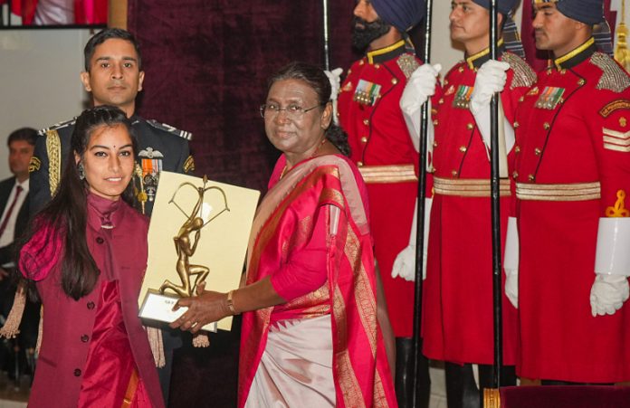 New Delhi, Jan 9: India’s best-performing athletes were on Tuesday conferred with the national sports awards by President Droupadi Murmu in a regal ceremony where cricketer Mohammed Shami and para archer Sheetal Devi walked in to a rapturous applause at the Rashtrapati Bhawan.