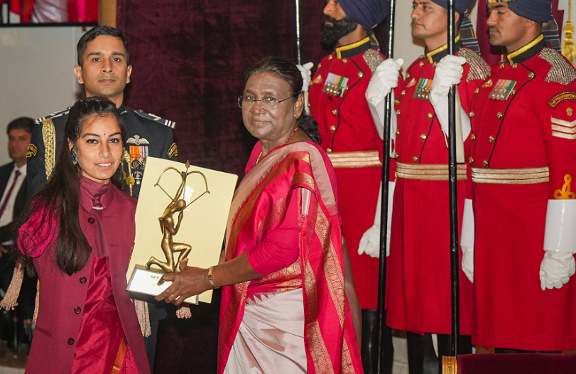 Arjuna Awards: Ojas Pravin Deotale (archery), Aditi Gopichand Swami (archery), Murali Sreeshankar (athletics), Parul Chaudhary (athletics), Mohammad Hussamuddin (boxing), R Vaishali (chess), Mohammed Shami (cricket), Anush Agarwalla (equestrian), Divyakriti Singh (equestrian dressage), Diksha Dagar (golf), Krishan Bahadur Pathak (hockey), Sushila Chanu (hockey), Pawan Kumar (kabaddi), Ritu Negi (kabaddi), Nasreen (kho-kho), Pinki (lawn bowls), Aishwary Pratap Singh Tomar (shooting), Esha Singh (shooting), Harinder Pal Singh Sandhu (squash), Ayhika Mukherjee (table tennis), Sunil Kumar (wrestling), Antim Panghal (wrestling), Naorem Roshibina Devi (wushu), Sheetal Devi (para archery), Illuri Ajay Kumar Reddy (blind cricket), Prachi Yadav (para canoeing).