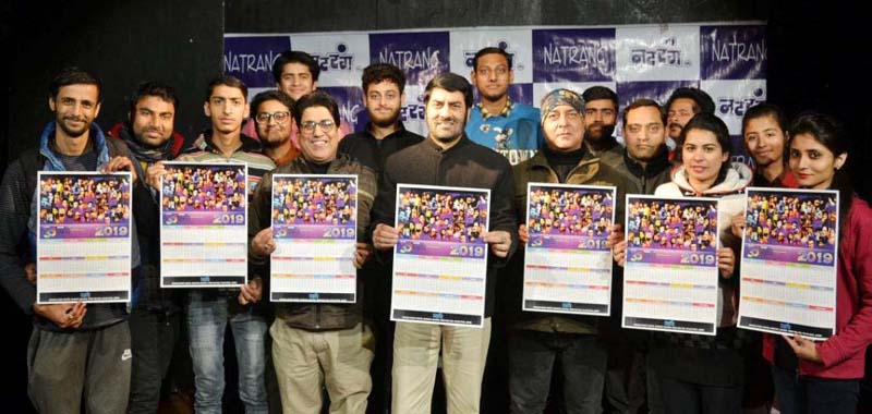 JAMMU, Dec, 27: Natrang has become first cultural institution of India for having launched its own calendar for the year 2019. The year calendar 2019 of Natrang Jammu was released here, today by Balwant Thakur, Director Natrang in presence of senior and young artists of organisation.