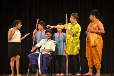 As the director himself is a product of these plays and the present year’s performance is the silver jubilee year performance of Natrang Children Theatre, he finds it appropriate to recreate some of the scenes of these plays and present them in his own genre. But despite presenting the hard hitting and contemplating situations like population, competition, pollution etc the play maintained the chord of celebration with the sumptuous dose of wit and humor for which the director is to be attributed.