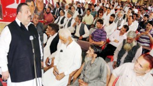 Provincial President NC, Devender Singh Rana addressing party workers meeting at Ramban on Thursday.