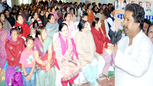 Minister for Housing, Raman Bhalla addressing public meeting on Monday.