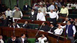 The pandemonium in the House began after Congress MLA from Banihal, Vikar Rasool raised the demand of compensation for the victims of snow avalanche in Banihal where two women and a boy had lost their lives.
