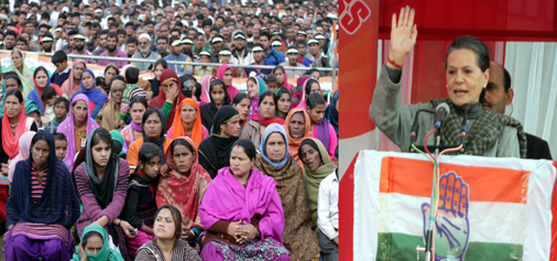 While showcasing former Chief Minister Ghulam Nabi Azad’s tenure as ‘era of development in the State’, Ms Gandhi said it was due to the efforts of Azad that hundreds of villages and areas were connected through road connectivity and power supply besides hospitals and educational institutions were set up. The biggest thing Congress has done during its rule is an equitable development in all the three regions of the State. She said the Congress party would seek votes from the people only on the development plank, peace and progress of the State. Only Congress can keep all the three regions of the State united and ensure better development, peace and prosperity here, she maintained.