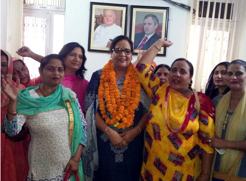 NC leader and Ex-MLA, Bimla Luthra at a meeting of women workers at party office in Jammu on Thursday.