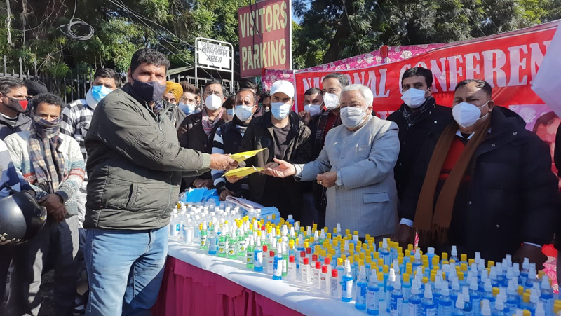 JAMMU, Jan 11: J&K National Conference Central Zone secretary, Dr Vikas Sharma organized free masks and hand sanitizers distribution camp near Jammu University main gate, here today.
