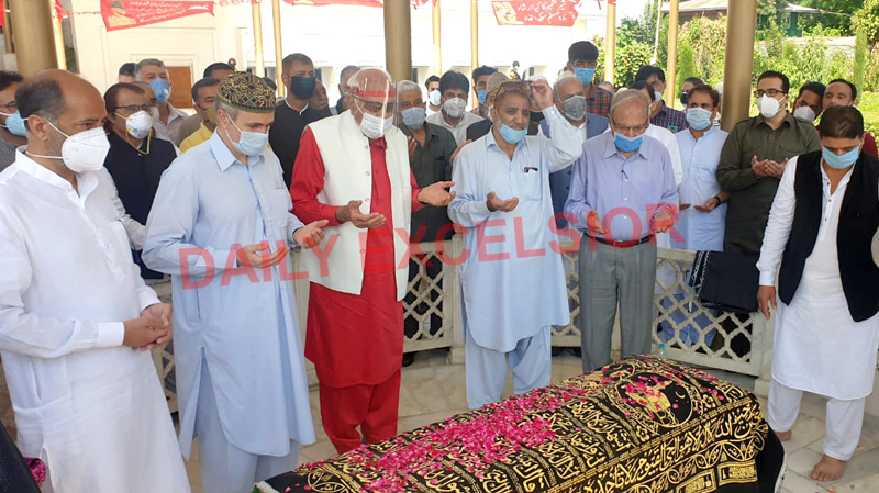 NC leaders paying tributes to Sheikh Abdullah at Hazratbal on his 38th death anniversary. —Excelsior/Shakeel By Daily Excelsior - September 9, 2020 Share FacebookTwitterWhatsAppPinterestLinkedinCopy URLTelegramEmailTumblrReddItPrintKoo NC leaders paying tributes to Sheikh Abdullah at Hazratbal on his 38th death anniversary. —Excelsior/Shakeel NC leaders paying tributes to Sheikh Abdullah at Hazratbal on his 38th death anniversary. —Excelsior/Shakeel Follow our WhatsApp channel