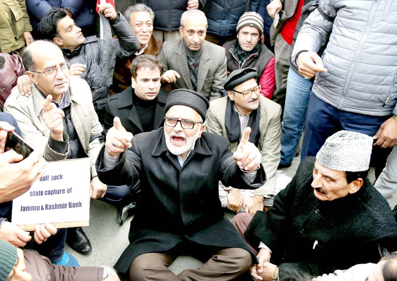 The protest culminated at the corporate headquarters of the Jammu and Kashmir Bank on M A Road here.