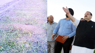 NC Provincial President Devender Singh Rana during tour of hail storm hit area.