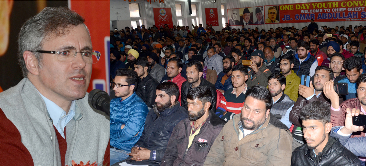 NC vice president Omar Abdullah addressing Youth NC convention in Jammu on Tuesday. -Excelsior/Rakesh By Daily Excelsior - January 9, 2019 Share FacebookTwitterWhatsAppPinterestLinkedinCopy URLTelegramEmailTumblrReddItPrintKoo NC vice president Omar Abdullah addressing Youth NC convention in Jammu on Tuesday. -Excelsior/Rakesh NC vice president Omar Abdullah addressing Youth NC convention in Jammu on Tuesday. -Excelsior/Rakesh Follow our WhatsApp channel