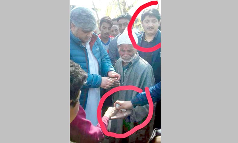 The picture of distribution of money by NC workers went viral on social media. Akbar Lone’s son is also seen in the picture.