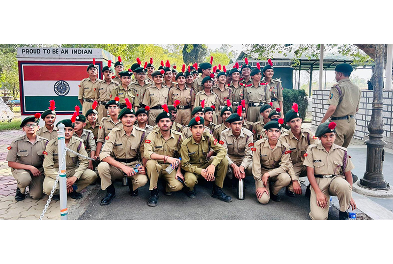 NCC cadets during visit to Suchetgarh along Indo-Pak border in R S Pura Sector on Sunday.