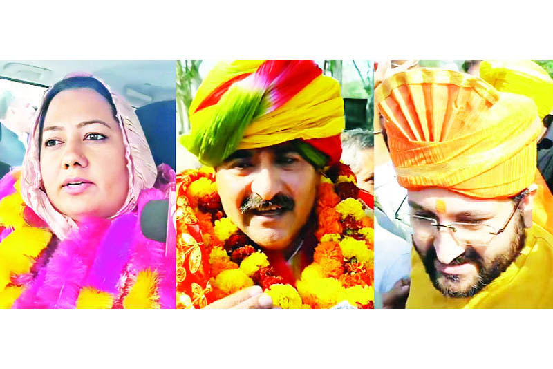 JAMMU, Oct 20: National Conference candidate and DDC Member,Dansal, Shamim Begum, Aam Aadmi Party’s, Joginder Thakur and former Sarpanch and president J&K Panchayat Conference, Anil Sharma filed their nomination papers from Nagrota Assembly segment for November 11 by-elections today.