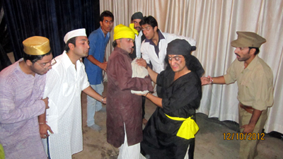 Anit Dhar as Shah, Anil Atri as DSP, Rahul Kumar as PA of Neta, Sunit Kumar as Neta, Sanyam Pandoh as doctor, Prabsimran Singh as judge, Anurag Bakshi as poor man, Tarun Sudershan Vasson as Baba performed in the play. The music in the play was given by Dilshad Shazi, Lights were executed by Kamaljit Singh Jordan. Make-up by Reetu Manhas, costumes by Parveen Kumar. The presentation was done by Kibu Bharat.