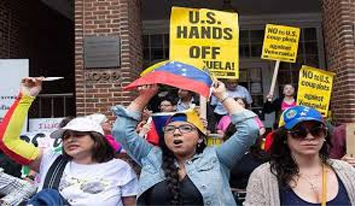 WASHINGTON, May 19: Around 200 people gathered outside White House in Washington to protest the US government’s seizure of the Venezuelan embassy and the arrest of four activists who resided in the diplomatic facility as guests of the Venezuelan government.