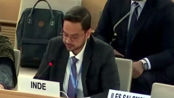 “We are compelled, once again, to address provocations from a country whose own leadership recently likened it to a “dump truck”, perhaps an inadvertently apt metaphor for a state that continues to deposit recycled falsehoods and stale propaganda before this distinguished Council,” Kshitij Tyagi, Counsellor, Permanent Mission of India, Geneva, said om Tuesday.
