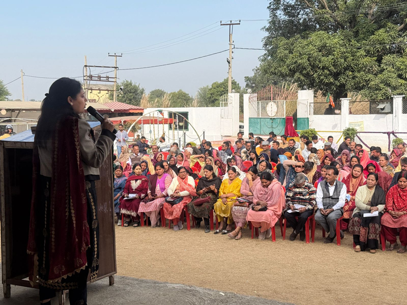 In Vijaypur, a vibrant Mahila Sammelan titled ‘Bazurga Da Beda’ was organised, where Neha Mahajan highlighted the pivotal role of women in preserving cultural values, strengthening society and leading community development.