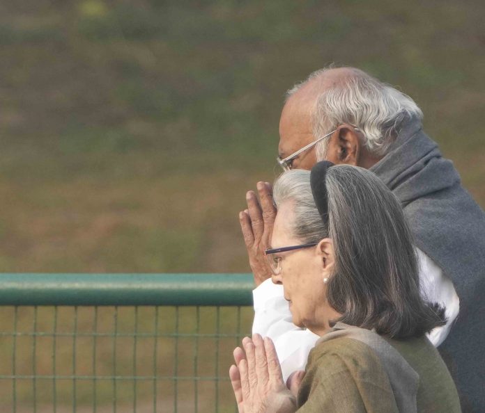 Congress president Mallikarjun Kharge and former party chief Sonia Gandhi paid floral tributes to Nehru at his memorial at Shanti Van here.