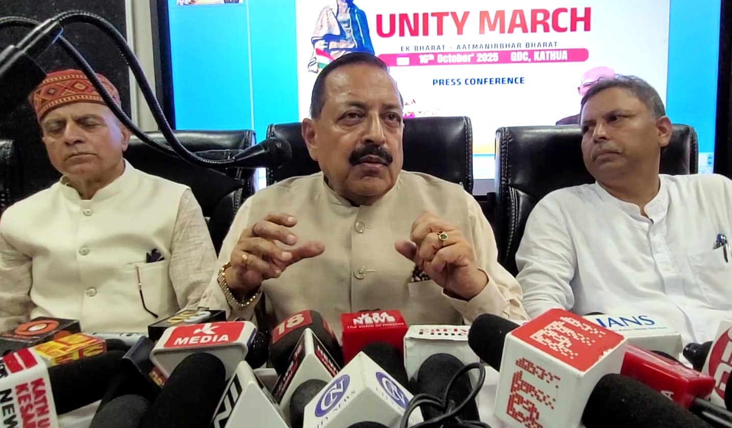 Earlier, Dr Jitendra Singh was joined by a large number of students, NCC cadets, public representatives and local people during the March which began from Dream Land Park and culminated in the premises of Government Degree College (GMC). The Sardar@150 Unity March is aimed at awakening the spirit of unity, patriotism, and duty among the youth.