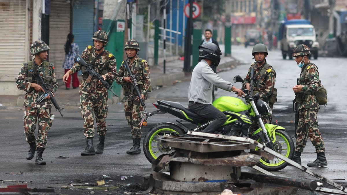 The Nepalese capital wore a deserted look as soldiers guarded the streets and ordered people to stay at home, a day after protesters set fire to the Parliament, the President’s Office, the PM’s residence, government buildings, Supreme Court, political parties’ offices and homes of senior leaders.