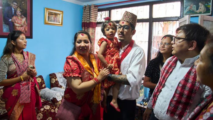 Tuesday is the eighth day of Dashain, a 15-day celebration of the victory of good over evil. Offices and schools are closed as people celebrate with their families.