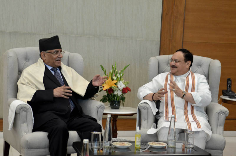 NEW DELHI, July 17: Former Nepal Prime Minister Pushpa Kamal Dahal ‘Prachanda’ Sunday met BJP president J P Nadda at the party’s headquarters here, as they discussed ways to further deepening the ties between their parties and the two countries.
