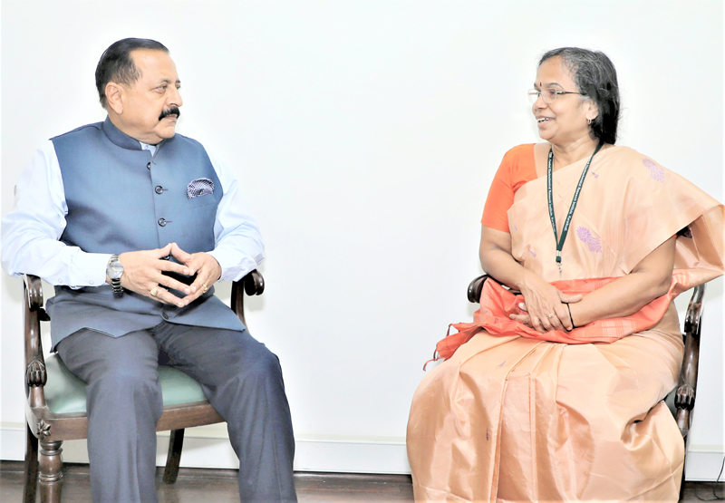 NEW DELHI, Aug 8: Newly appointed Director General, Council of Scientific & Industrial Research (CSIR), Dr N. Kalaiselvi today called on Union Minister of State (Independent Charge) Science & Technology; Minister of State (Independent Charge) Earth Sciences; MoS PMO, Personnel, Public Grievances, Pensions, Atomic Energy and Space, Dr Jitendra Singh after taking over the charge of office.