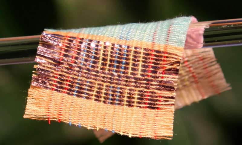 To make the fabric, researchers used a commercial textile machine to weave together solar cells constructed from lightweight polymer fibres with fibre-based triboelectric nanogenerators.