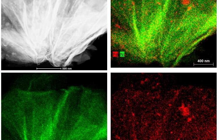 Suib’s lab used scanning transmission electron microscopy to map cross-sections of the new nickel-iron catalyst, revealing its internal structure.