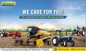 New Delhi, May 29: New Holland Agriculture, a global agricultural equipment brand of CNH Industrial, has announced a 60 days warranty extension on its agricultural machines.