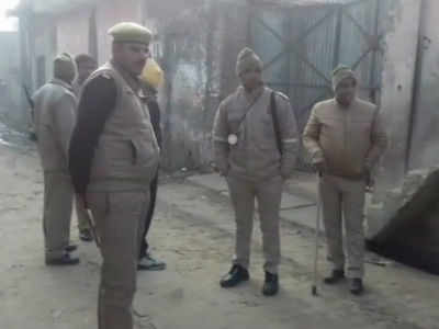 Visuals showed officials on the streets of Amroha in Uttar Pradesh. The officials were seen surrounded by locals.