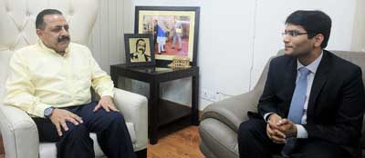 NEW DELHI, July 25: New President of Indian Chamber of Commerce (ICC), Shashwat Goenka, who is also a successor of the well known R.P. Goenka business group, today called on Union Minister of State (Independent Charge) for Development of North Eastern Region (DoNER), MoS PMO, Personnel, Public Grievances, Pensions, Atomic Energy and Space, Dr Jitendra Singh here and discussed a wide range of issues including GST implementation and future investment possibilities in Northeast.